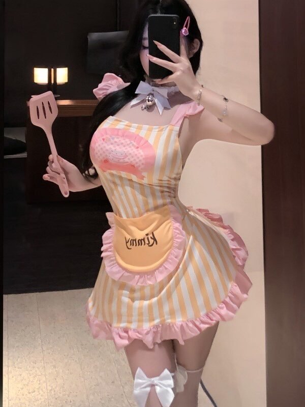 Cute Apron-Style Striped Lingerie Dress Set